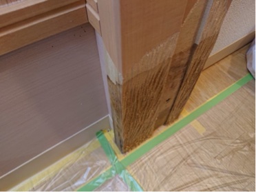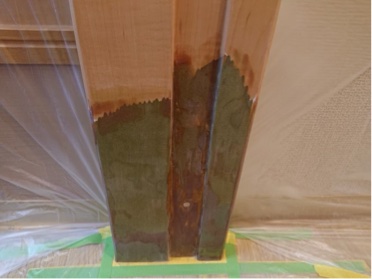 調色した塗料で塗装し、馴染むように木目をいれて作業完了です。