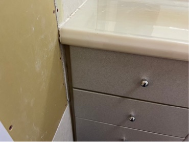 引き出しの表面が剥がれ下地が出てしまっています。