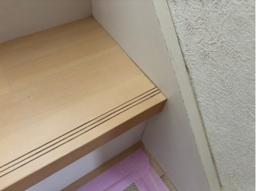 階段踏み板がキズ付き下地が出ています。
