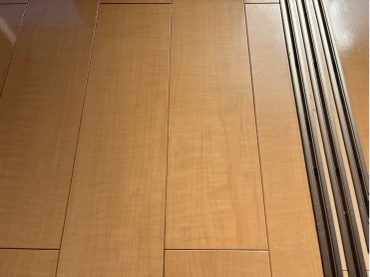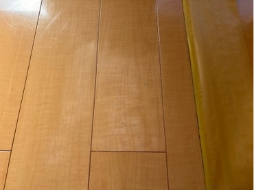 フローリングに複数のキズや剥がれがあります。
