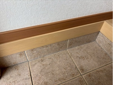 玄関框の下部が剥がれてボロボロになっています。